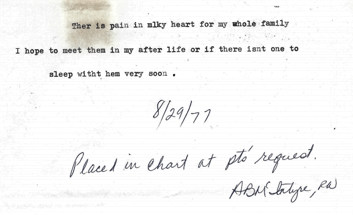 To know that the information was there all along and no one searched through that box for 4 decades is to realize that she was neglected in death just as badly as she was neglected in life. I thought it was important information for the few people who remember her or who once heard about her. I am attaching her note and will have many more to share with anyone who has the civility to contact me and wants to hear the true story. There are many untruths that have been passed around while I’ve stayed silent with the family for all these years. It’s my turn now, and I’m short on time.